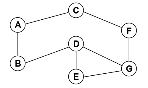 vertices (A - G) and 8 edges connecting them. There are 3 different paths